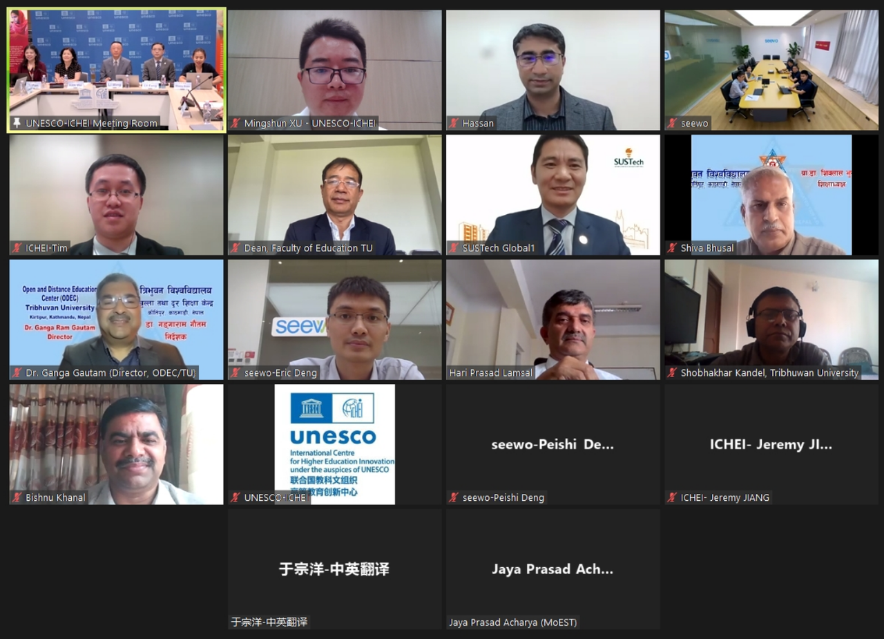 The Smart Classroom will be hosted byTribhuvan University, and expected to bring new technologies and new teaching pedagogies to teachers and students of one of the world's largest universities. It is donated by Guangzhou Shirui Technology Co., Ltd. (Hereinafter referred to as "seewo"), a well-known Chinese educational technology equipment company. Witnessed by H.E. Dr. Hari Lamsal, Joint Secretary-General of the Ministry of Education, Science and Technology of Nepal, the project was entered into agreement by Prof. Shiva Lal Bhusal, Rector of Tribhuvan University, Mr. DENG Yigang, Director of seewo, and Dr. CHEN Hao, Executive Deputy Director of SUSTech Global of Southern University of Science and Technology, and Prof. LI Ming, Director of UNESCO-ICHEI.