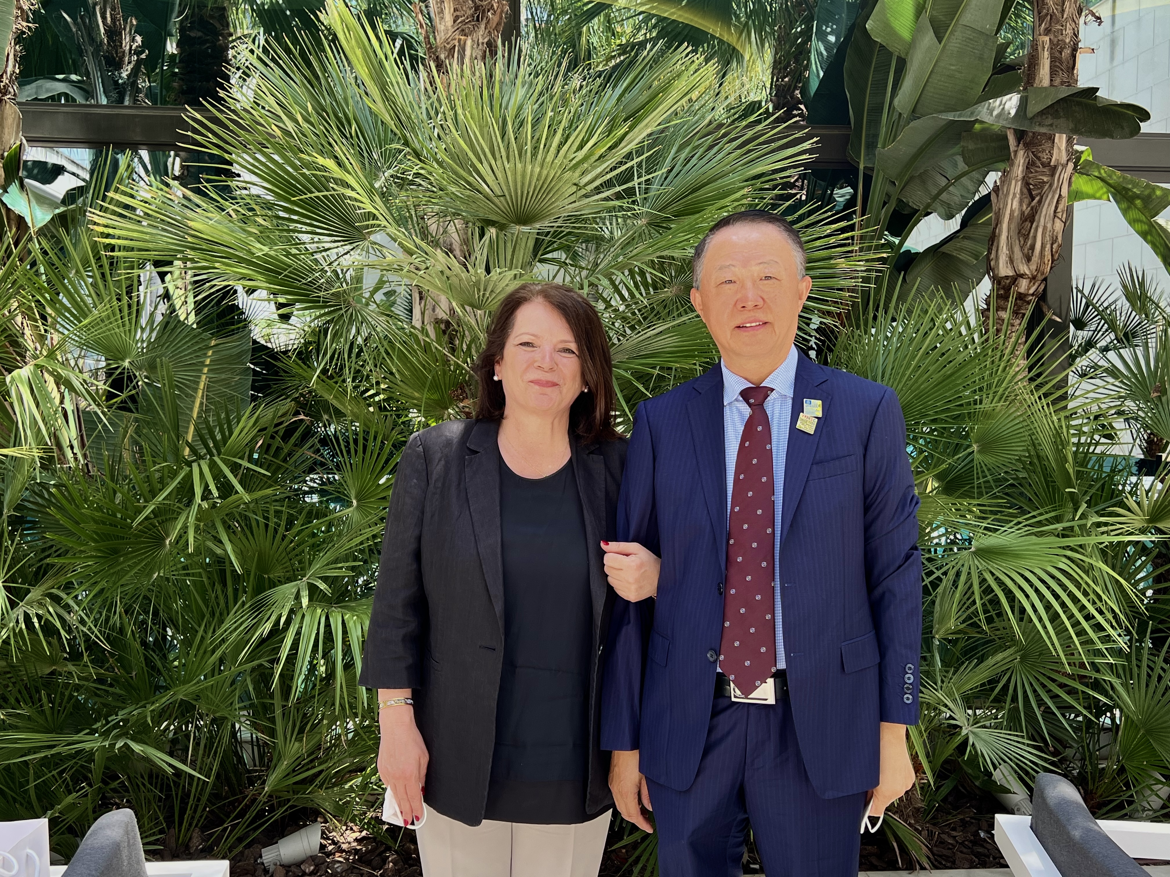 At 1:00 p.m. on 16 May 2022, Barcelona time, Professor LI Ming, Director of the International Centre for Higher Education Innovation under the auspices of UNESCO (UNESCO-ICHEI), met with Professor Silvia Florea, Director of the UNESCO Chair in Quality Management of Higher Education and Lifelong Learning of "Lucian Blaga" University of Sibiu (LBUS) during the 2022 World Higher Education Conference (WHEC2022). Professor Silvia Florea introduced the Chair's work in Romania and Eastern Europe in the meeting. Both parties exchanged opinions on multiple topics, particularly bilateral cooperation on higher education digital transformation in Eastern European countries and the feasibility of the Chair supporting IIOE's work through consultancy. Ms. DUAN Xiaotong, Senior Programme Officer at UNESCO-ICHEI, also attended the meeting.