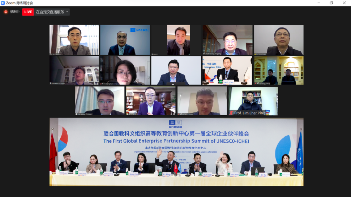 The First Enterprise Partnership Summit, organized by International Centre for Higher Education Innovation (Shenzhen, China) under the auspices of UNESCO (hereinafter referred to as "Innovation Center") and its International Institute of Online Education (IIOE), was successfully held on January 14, 2022, with the theme of "Connecting and Co-Building the Digital Future of Higher Education". Through the discussion on the trend and relevant practices of global higher education digital transformation, this summit provides a multilateral exchange platform for stakeholders in the field of global higher education, including international organizations, partner universities and enterprises, and helps build the global higher education digital transformation ecology. Business representatives from 56 countries in many regions of the world, representatives of UNESCO, representatives of global institutions of higher education and top scholars were invited to attend and present.