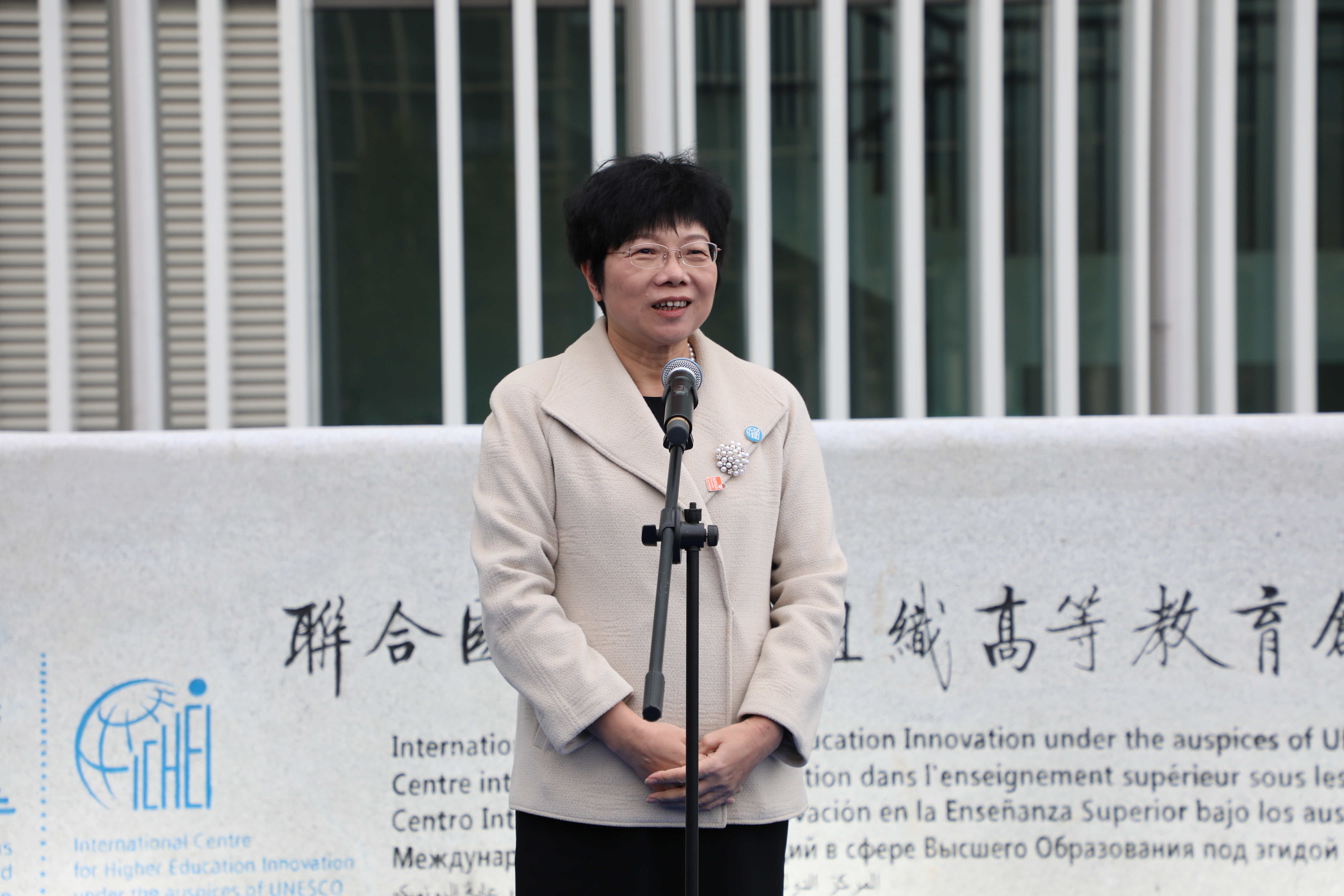 Ms. GUO Yurong delivering a speech In her speech, Ms. GUO Yurong congratulated UNESCO-ICHEI for moving into the new office and recognized the achievements that UNESCO-ICHEI has made over the past five years. She further acknowledged UNESCO-ICHEI's remarkable contributions in promoting the international cooperation in higher education and hoped that UNESCO-ICHEI can secure better development under the leadership of Prof. LI Ming and hard work of all UNESCO-ICHEI colleagues.