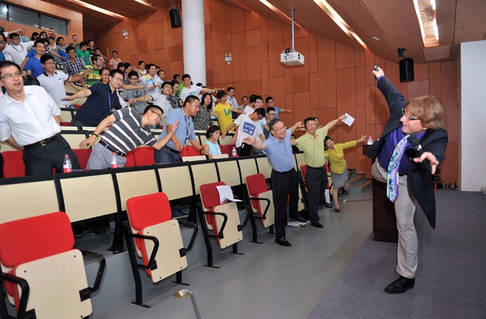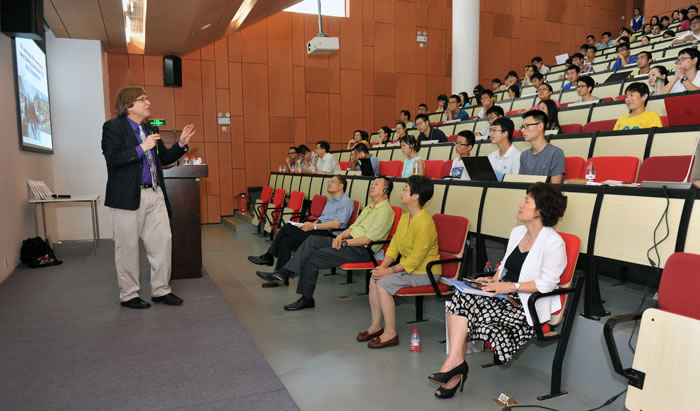On June 10, 2015, Curtis J.Bonk, an internationally renowned expert in the field of emerging learning technologies and Professor at the Department of Instructional Systems Technology at Indiana University accepted an offer to come to SUSTech and give a lecture. Curtis J. Bonk introduced the huge changes happening to educational methods and learning behaviors due to the rapid development of educational technology. University Council Chairman, LI Ming, Vice President WU Chuanyue, HAN Wei, the Deputy Director of the Preparation Office, and hundreds of SUSTech teachers and students were in attendance. The event was hosted by the Vice-President WU Chuanyue.As a pioneer of open learning, Professor Bonk has published more than 300 papers on the topics of online and blended learning, MOOCs, collaborative technology, and synchronous and asynchronous computer conference, and has conducted about 1,400 speeches and forums about online teaching and learning worldwide. Additionally, Curtis J.Bonk has been listed in Who's Who in the area of educational technology, and has received the CyberStar Award from the Indiana Information Technology Association, the Most Outstanding Achievement Award from the U.S. Distance Learning Association, and the Most Innovative Teaching in a Distance Education Program Award from the State of Indiana. The title of the lecture at SUSTech was, "Learning Is Changing: MOOCs, the Open World and Beyond."According to Professor Bonk, in the era of the internet, learning has been completely changed and anyone can learn anywhere at any time from nearly anyone. Open education has driven big changes to learning methods, including: more mobile learning, more frequent use of videos and games, more collaborative learning, more explorations, more direct need of experts, more informality, autonomous learners, more hands-on learning, personalized learning, more dependence on learning communities, universality of online learning, ubiquitous learning, free access, globalization of learning, and the popularization of learning. In the lecture, Professor Bonk also introduced the way to accelerate and support online learning and online teaching based on his own research on open learning.