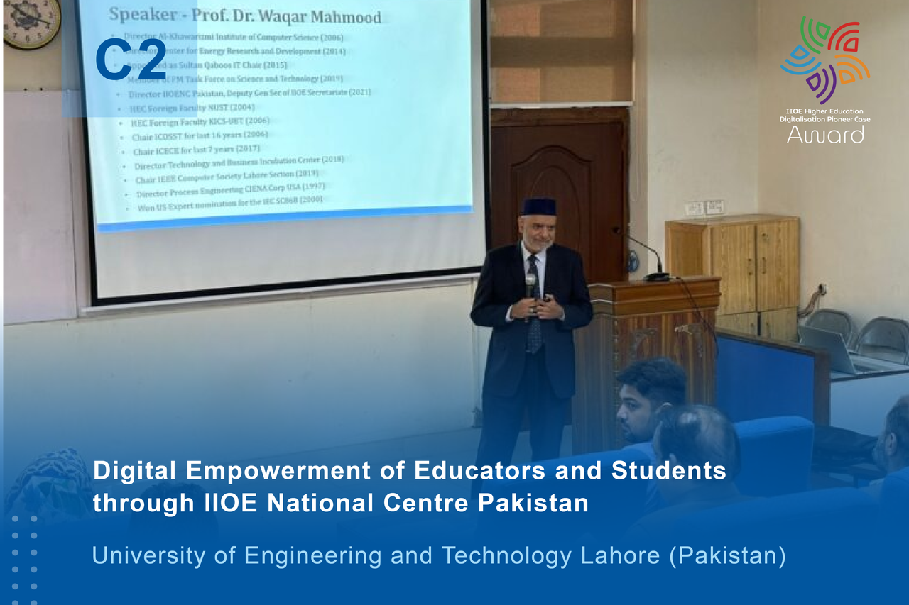 Systemic gaps, arising from uneven internet penetration, low levels of digital literacy among teachers and students outside major cities, and insufficient use of digital tools in teaching, have constrained Pakistan’s progress toward achieving the United Nations Sustainable Development Goal 4 (Quality Education). To bridge these gaps, the University of Engineering and Technology Lahore (UET Lahore), building on the IIOE Pakistan National Centre established in 2021, has localized IIOE resources, supported partner universities in developing digital content, and provided targeted professional development training in areas such as artificial intelligence and machine learning. With the backing of international collaboration, national policy support, and partnerships with provincial higher education commissions, UET Lahore, through the IIOE Pakistan National Centre, is working to advance digital empowerment for teachers and students in Pakistan’s education sector.