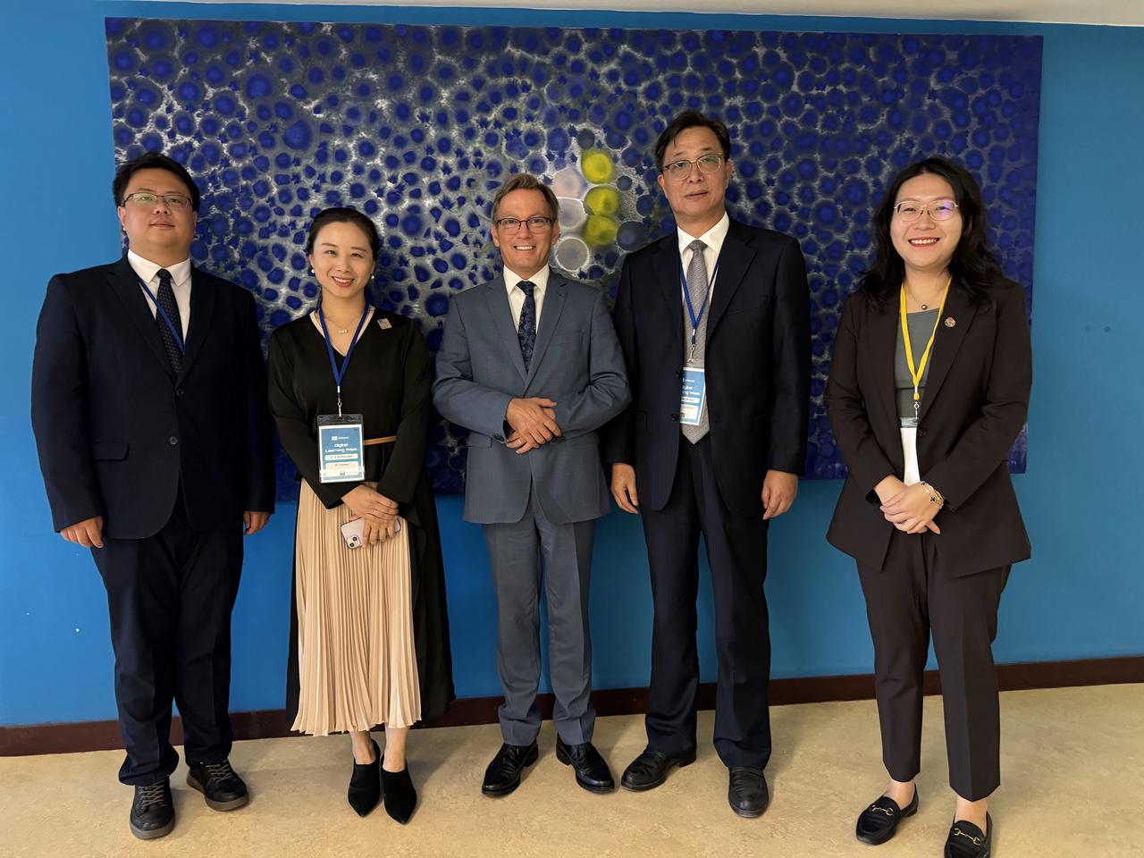 On the afternoon of September 5, Paris time, the UNESCO-ICHEI delegation visited Mr. Borhene Chakroun, Director of the Division for Policies and Lifelong Learning Systems at UNESCO, and held a bilateral meeting with his team. Both parties engaged in in-depth discussions on key projects currently being implemented by UNESCO-ICHEI and explored opportunities for future collaboration. Mr. Roy Saurabh, Senior Project Officer for AI Research at UNESCO, and Ms. LIU Yufeng, Senior Programme Specialist in the Section for Higher Education at UNESCO, also participated in the meeting. Mr. Borhene Chakroun expressed particular interest in the IIOE platform and resources, as well as his intent to incorporate the IIOE Micro-Certification Project and IIOE platform into UNESCO’s teacher development resource library.