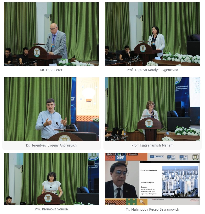 The Keynote Speeches were moderated by Prof. Rakhmatullaev Marat, Professor of TUIT; Team Leader of Higher Education Reform Experts in Uzbekistan. Mr. Atayev Azat, Deputy Minister of Education of Turkmenistan, introduced active integration of AI into higher education at the institutional and national levels. The Ministry of Education of Turkmenistan collaborated with the UNESCO IITE and experts from leading universities in China to develop and adopt a Cooperation Roadmap for 2024-2025, enhancing the digital transformation of higher education in Turkmenistan. Mr. Abdullaev Sherzod Shavkatovich, Chief Specialist of the Department of ICT Implementation and Digitalization of the Ministry of Higher Education, Science and Innovation; Secretary of the Advisory Council on AI, Uzbekistan, emphasised the strategic importance and investment required to develop LLM across the country. Currently, Uzbekistan has been collaborating with international experts to advance its LLM initiatives and promote technological development. Prof. Dr. Isak Frumin, Head of Observatory of Higher Education Innovations, Constructor University, Germany, emphasised the need to balance higher education and technology applications. He suggested that institutions need to put new technology into action and application first, and in the process ensure effective governance. HEIs need to look more at the opportunities rather than being hung up on risks and challenges. Mr. Borhene Chakroun, Director of Policies and Lifelong Learning Systems Division, UNESCO HQs, highlighted the role of Global Convention on the Recognition of Qualifications concerning Higher Education in education equity, inclusivity, and lifelong learning. Considering AI's growing influence on higher education, the convention promotes the recognition of qualifications and academic mobility, thus fostering innovation and preparing students for the future job market.