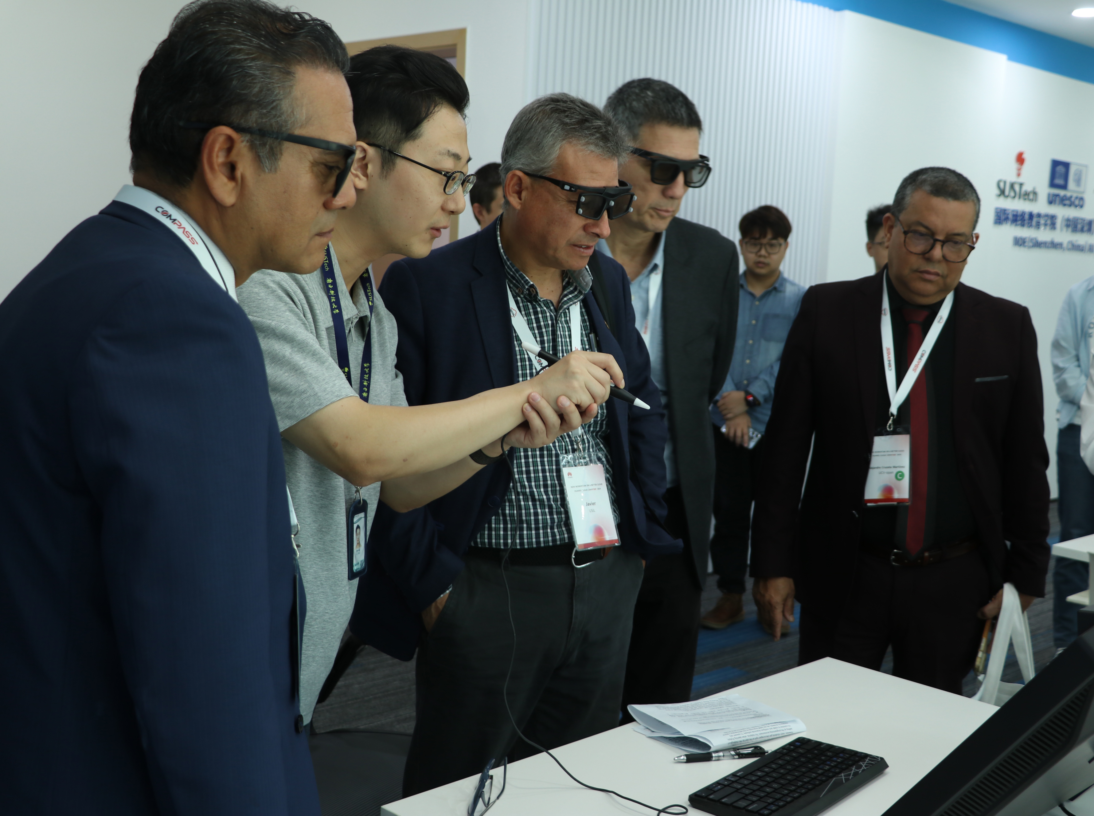 UNESCO-ICHEI presented its global partnership network, IIOE and key projects such as micro-certification, and smart classroom, while also reflecting on previous collaborations within the Latin America and Caribbean region. Representatives from SUSTech Global introduced the progress of school operation and international student admission. The universities' delegates shared insights into their development and international partnerships with various universities, businesses, and organisations. The meeting facilitated initial discussions on collaborative opportunities in areas such as partnership network expansion, co-development and localisation of IIOE content in Spanish, industry-academic collaboration, and the organisation of joint regional events and initiatives. Post-meeting, the UNESCO-ICHEI delegation guided visitors through IIOE AI Lab.