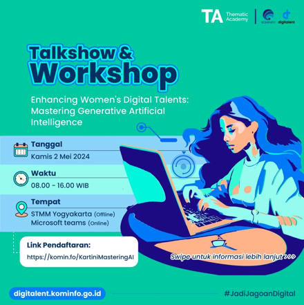 Under the circumstances, MCI plays an important role in balancing the supply of digital talents and industrial needs. MCI standardises ICT skills through Indonesian National Competency Standards (SKKNI), aligning with evolving industry needs, including AI. Some other actions include updating the National ICT Occupation Map, tailoring training programmes for lecturers and HEI leaders, and collaborating on the research and development of Indonesia's digital society index. In addition, MCI plans to provide women empowerment training on the theme of 'Enhancing Women's Digital Talents: Mastering Generative Artificial Intelligence'; this training aims to shape the understanding and skills of Indonesian women in the field of GenAI.