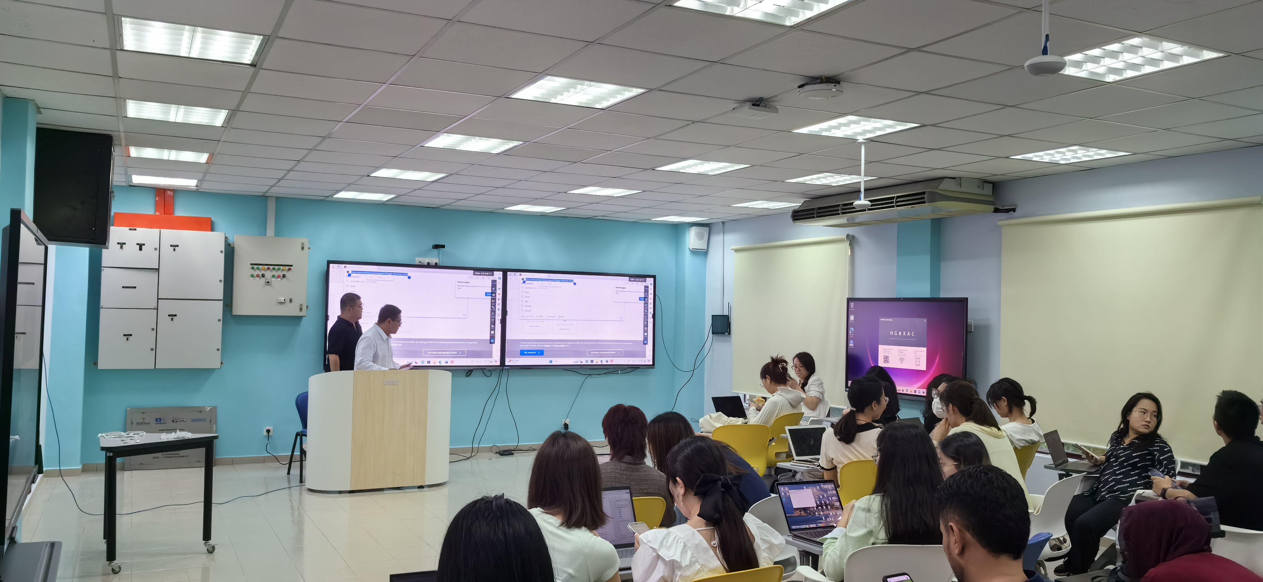 From March 25th to April 2nd, 2024, Mr. Tang Xiangzheng, CTO of the Smart Classroom Project, UNESCO-ICHEI and Yu Aobo, Project Manager, Seewo, visited the Universiti Putra Malaysia(UPM) to complete the installation and configuration of the smart classroom and conduct training on the use of the smart classroom to over 20 university personnel and 50 students. Prof. Dr. Ismi Arif Ismail, Deputy Vice-