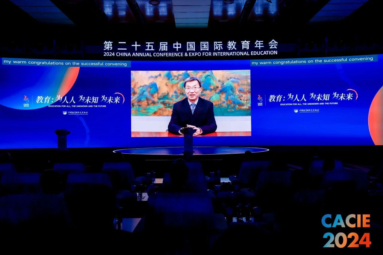 10月31日上午,全国人大常委会副委员长、民盟中央主席、欧美同学会(中国留学人员联谊会)会长丁仲礼出席大会并作开幕致辞。教育部部长怀进鹏作视频致辞。中国教育国际交流协会会长刘利民主持开幕式。