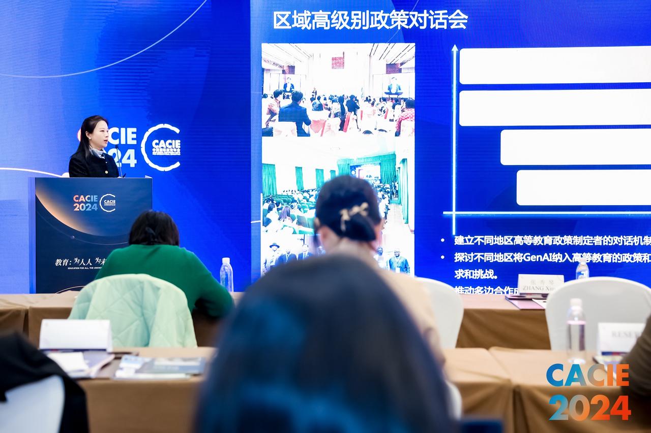 2024年10月31日至11月2日,第25届中国国际教育年会于北京举行。本届年会由中国教育国际交流协会主办,以“教育:为人人 为未知 为未来”为主题,主宾国是法国。来自全球60多个国家和地区的5000余名中外教育界人士、驻华使领馆官员和企业代表等参会。联合国教科文组织高等教育创新中心(中国深圳)(以下简称“创新中心”)受邀参会,分享了创新中心在高等教育工作者数字和人工智能能力提升和再培训领域的国际化实践。