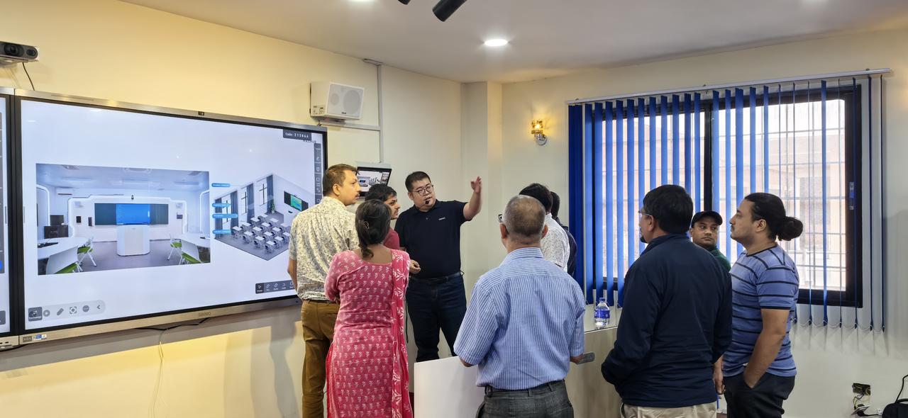 特里布万大学教育学院院长Chitra教授感谢了创新中心与希沃的支持,表明智慧教室的建设有利于加快本校高等教育数字化转型。智慧教室将面向全校师生开放,开展教学、研讨等活动,充分开发智慧教室使用潜力。试运行后,期待举行揭牌仪式进一步深化各方合作。同时,Chitra教授也介绍了创新中心的国际网络教育学院(IIOE)项目,号召更多教师参与相关活动。