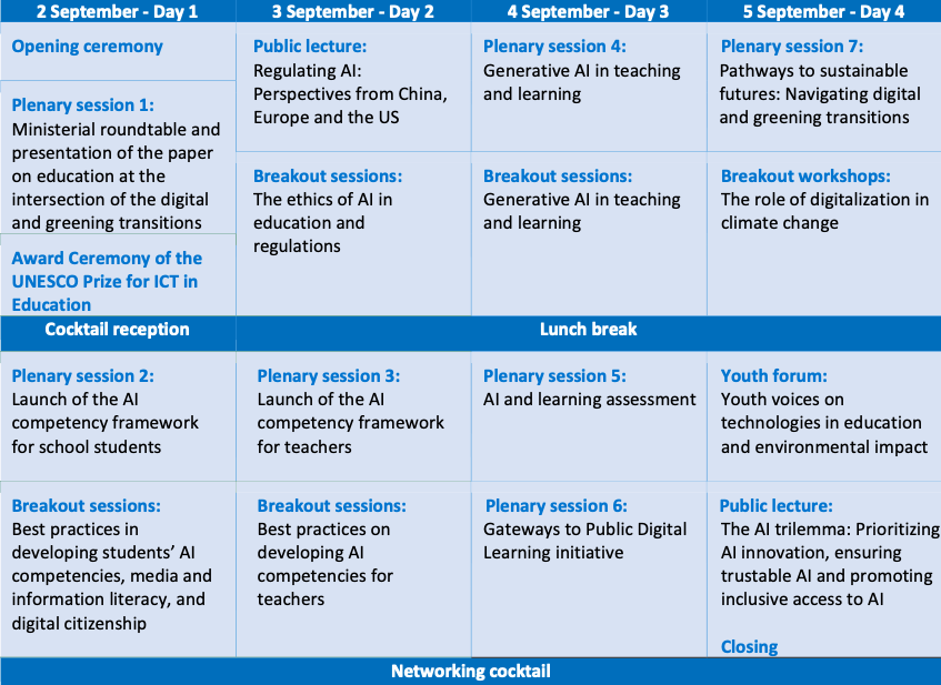 此外,本次活动的亮点包括意见领袖的公开演讲和联合国教科文组织教育信息化奖的颁奖仪式,以奖励数字化学习和绿色化教育融合的创新型项目。会议还将推出“公共数字学习门户”旗舰倡议,并发布青年版《2023年全球教育监测报告》。