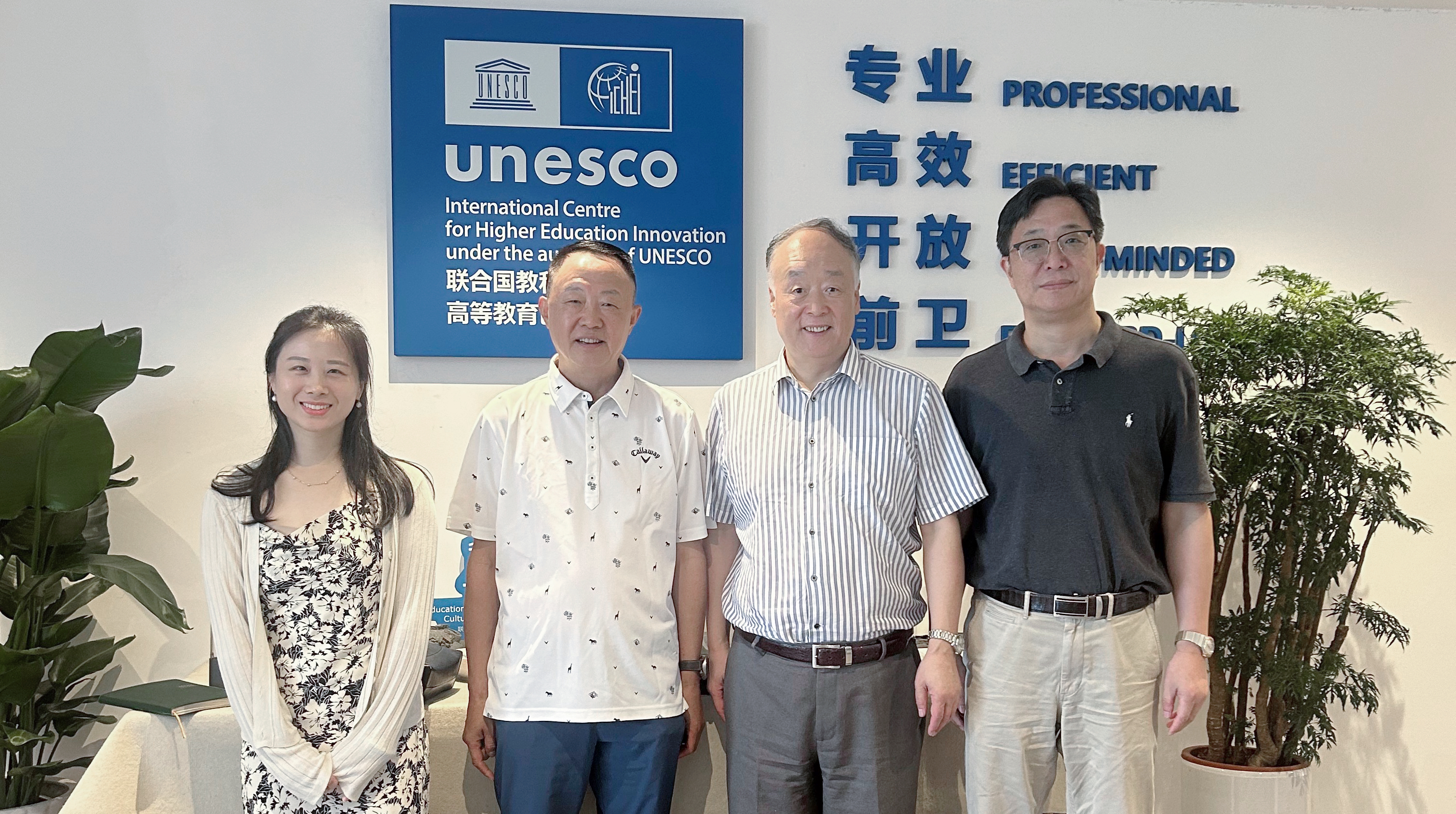 2024年5月11日,中国常驻联合国教科文组织原大使衔代表杨进博士访问了联合国教科文组织高等教育创新中心(中国深圳)(以下简称“创新中心”)。创新中心国际网络教育学院(IIOE)秘书处秘书长李铭教授、创新中心常务副主任梁建生教授、副主任毕小涵女士与杨进博士进行了洽谈。