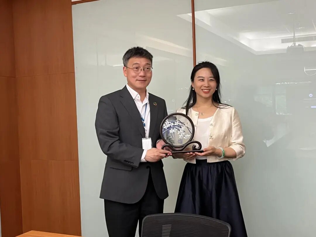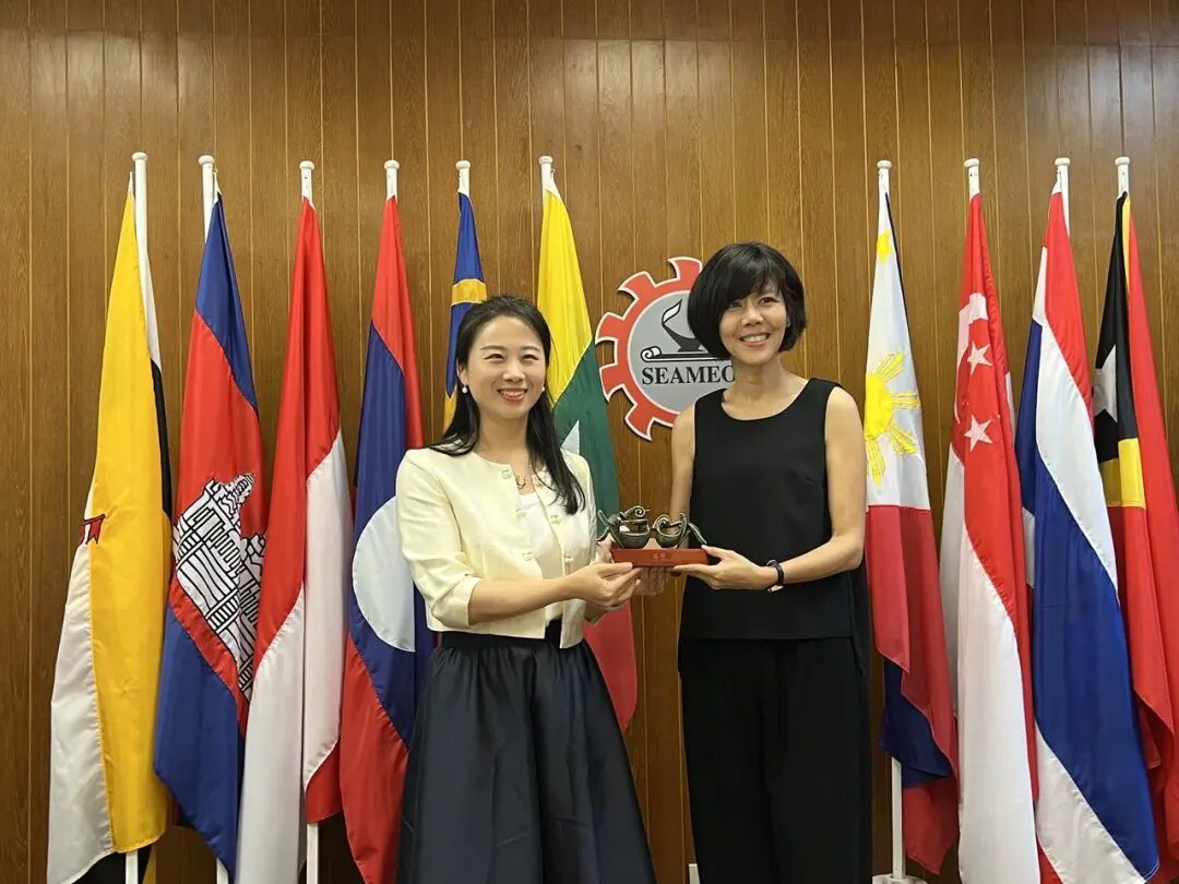 创新中心副主任毕小涵女士(左)与东南亚教育部长组织秘书处行政与传播副主任Pintip Lamnirath女士(右)