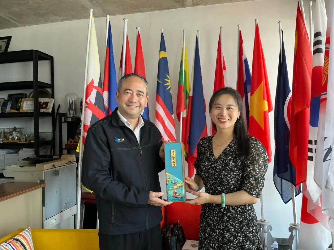 东盟大学联盟秘书处执行主任Choltis Dhirathiti博士(左)与创新中心副主任毕小涵女士(右)