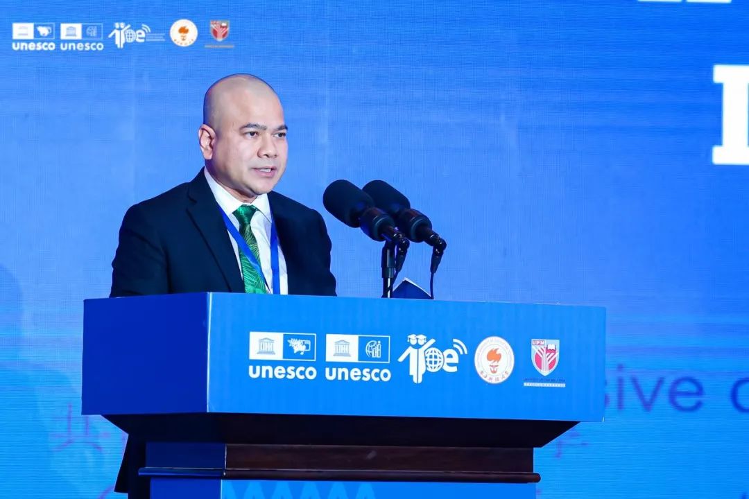 作为2024年轮值主席单位代表,尼日利亚艾哈迈德·贝洛大学校长Kabiru Bala首先感谢了历任IIOE轮值主席单位对IIOE发展的重大贡献,并表示艾哈迈德·贝洛大学作为2024年IIOE轮值主席单位将肩负起职责,与IIOE伙伴院校共同努力,在2024年进一步推动IIOE发展,并在战略层面形成更多的联盟。他表示人工智能作为一项新技术,在促进高等教育数字化转型方面已经发挥了重要作用,新的教育模式正在形成,我们必须要为此做好准备,重塑自身,教师要不断地学习发展,适应新的改变,作为高等教育的管理者,我们要建立起相应指南和指导原则,来确保包容性和公平性。