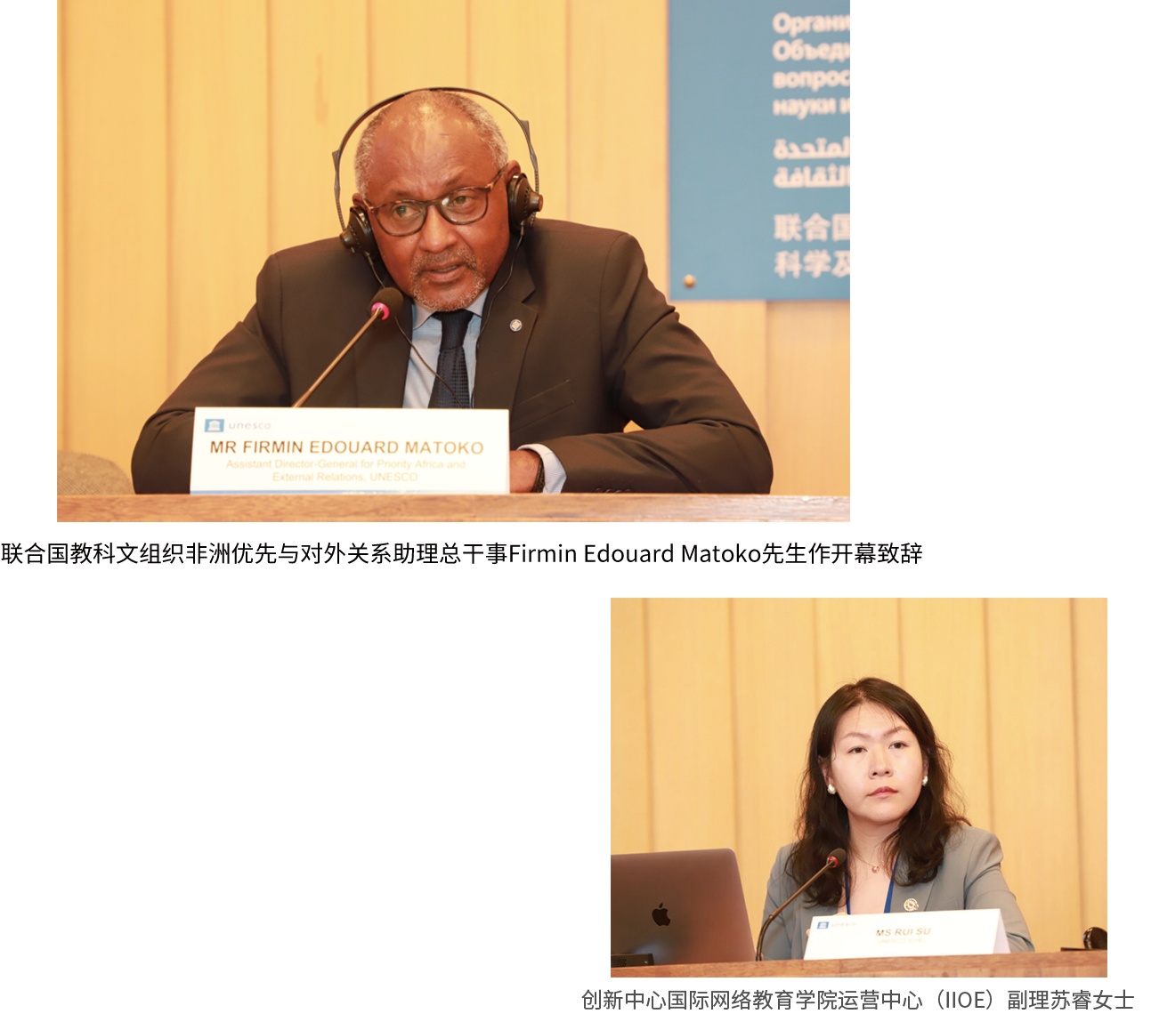 IIOE圆桌会议由创新中心IIOE运营中心苏睿女士主持。联合国教科文组织非洲优先与对外关系助理总干事Firmin Edouard Matoko先生特别出席会议并作开幕致辞。他提出在非洲高等教育面临基础设施落后、教育质量不均衡、资源紧缺等诸多挑战之际,中国政府在教育和其他领域长期支持非洲的可持续发展。他特别强调,创新中心作为教科文组织的一员,始终致力于高等教育创新,通过 IIOE 平台赋能教师数字能力、开展微证书课程,为非洲青年获得前沿技能开辟了新的途径。