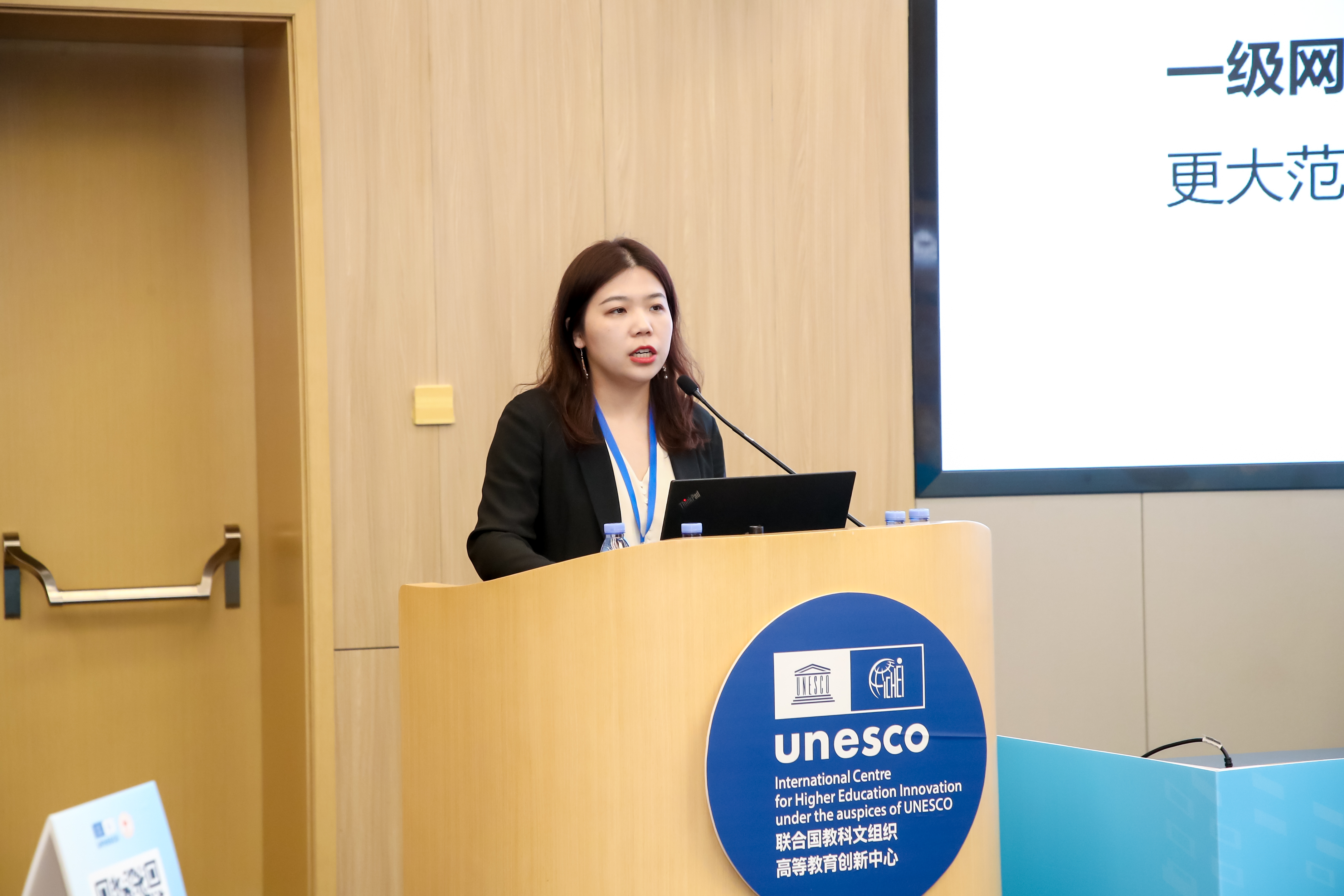 随着深圳高等教育国际化水平持续提升,中国的“一带一路”倡议不断走深落实,深圳高等教育和高等职业教育“走出去”也呈现出蓬勃发展之势。会议中创新中心两位主任助理李帆和毕小涵分别介绍了创新中心作为设立在深圳的国际组织二类机构,利用独特的平台优势和国际资源,服务深圳和中国的国际化发展,与亚洲和非洲高校共建高等教育数字化联盟,为深圳和中国的高校与企业创造国际化合作与走出去的平台、机遇,譬如创新中心与深圳高校共建的三十多门信息技术通识类课程赋能于发展中国家伙伴高校教师的信息技术素养,创新中心与中国一批优秀的教育科技企业合作智慧教室项目,增强发展中国家伙伴高校的数字化基础设施能力。