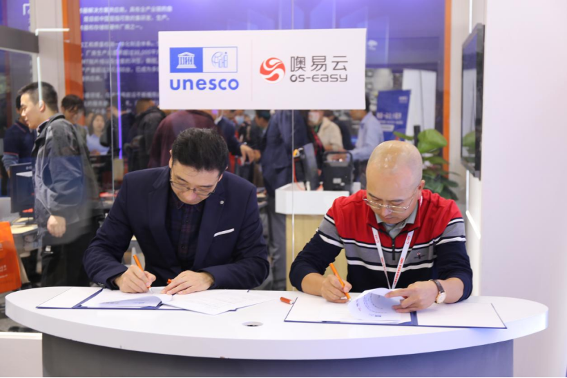 2023年4月8日,联合国教科文组织高等教育创新中心(中国深圳)(以下简称“创新中心”)代表赴重庆参加第58·59届中国高等教育博览会,并与武汉噢易云计算股份有限公司(以下简称“噢易云”)签署战略合作框架协议暨智慧教室合作协议。创新中心IIOE运营中心负责人薛峰、噢易云副总裁周毅出席签约仪式,双方将在智慧教室捐建、云计算认证、课程资源共享、国际业务拓展等领域开展合作,并就亚非六国智慧教室合作达成一致意见。