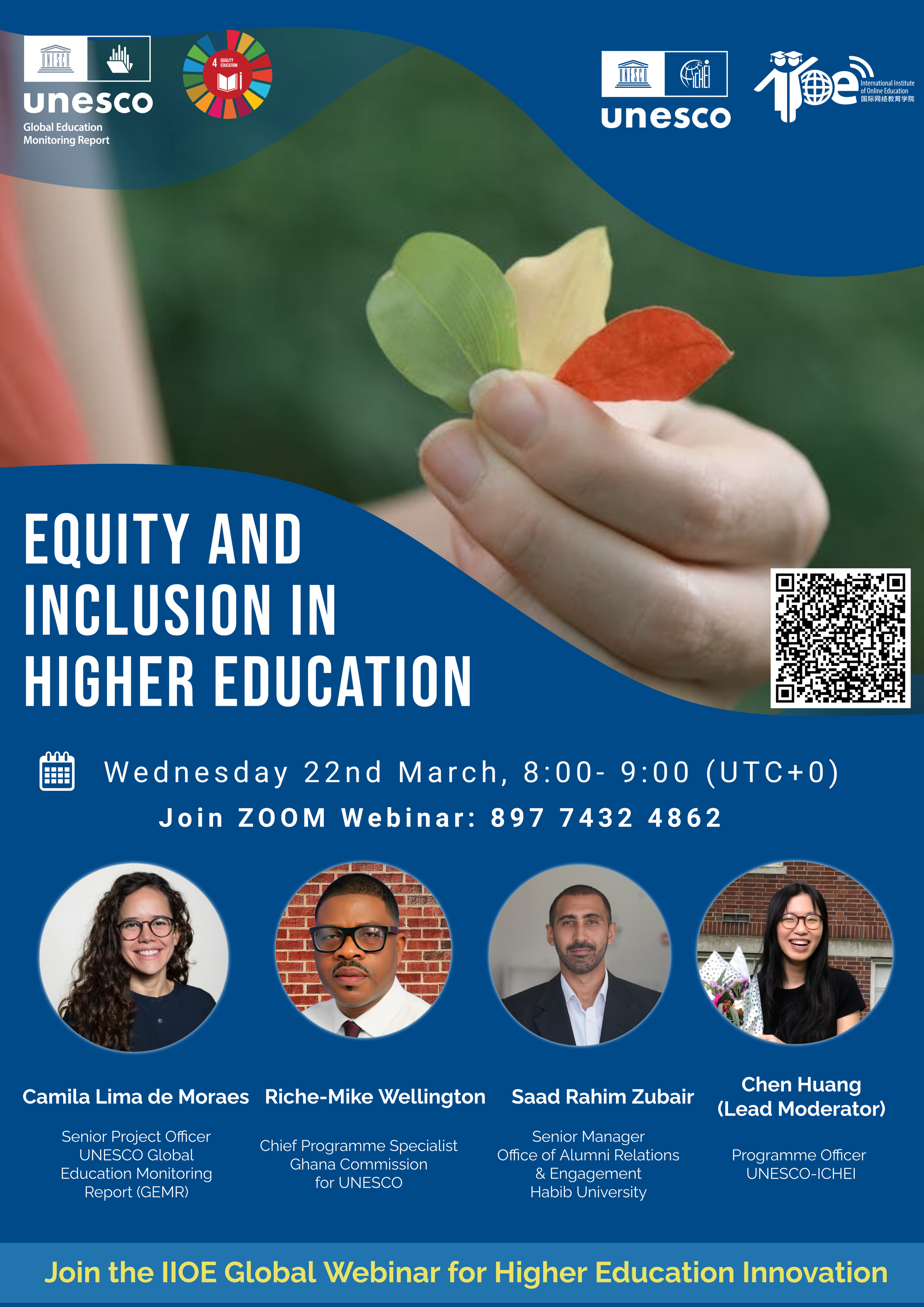 2023年3月22日,国际网络教育学院(IIOE)与联合国教科文组织《全球教育监测报告(Global Education Monitoring Report)》(以下简称,“GEM报告”)团队共同举办了一场网络研讨会,主题为“高等教育中的公平与包容性(Equity and Inclusion in Higher Education)”。《全球教育监测报告》是2002年由教科文组织出版的一份编辑独立的年度报告。本次研讨会共有来自56个国家和地区的293名高等教育专家注册,实际到会68人。研讨会邀请了全球各地的研究人员与从业人员共同就高等教育中的非公办机构以及促进高等教育领域公平与包容性参与的具体措施展开讨论。