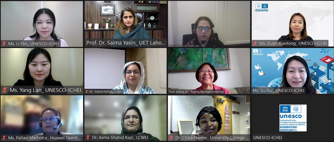 2022年10月21日,联合国教科文组织高等教育创新中心(以下简称“创新中心”)国际网络教育学院 (IIOE) 面向全球学员举办了“构建平等、包容的高等教育:STEM女性领导力”为主题的网络研讨会。来自55个国家的338名高等教育机构教师,学者,信息技术领域高级管理人员等参与了此次会议。现场嘉宾就STEM领域女性学术和职业发展问题展开了热烈讨论。