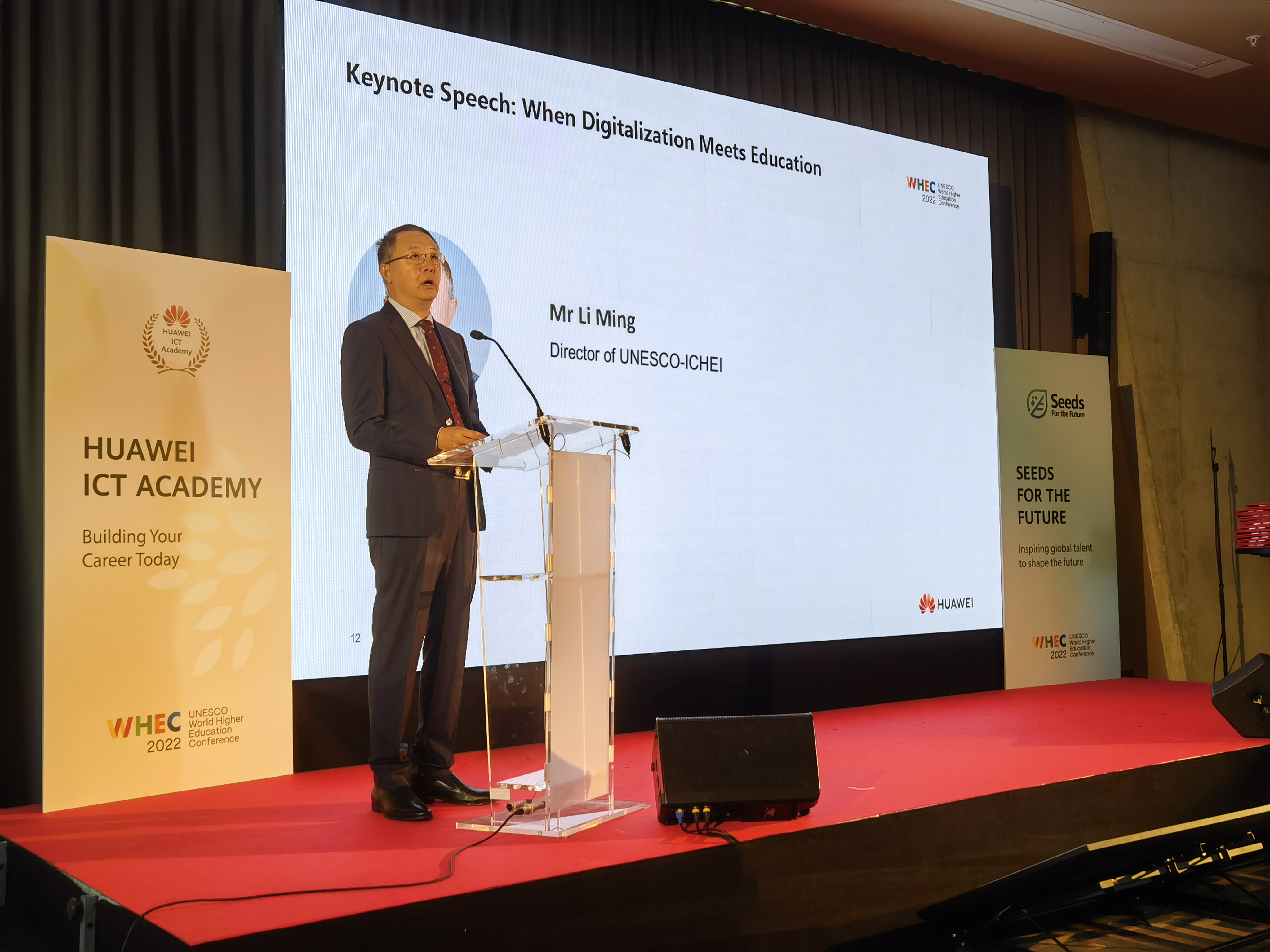 巴塞罗那当地时间5月17日上午10点,联合国教科文组织高等教育创新中心(中国深圳)(以下简称“创新中心”)受邀参加了华为在世界高教大会期间举办的华为数字人才峰会。