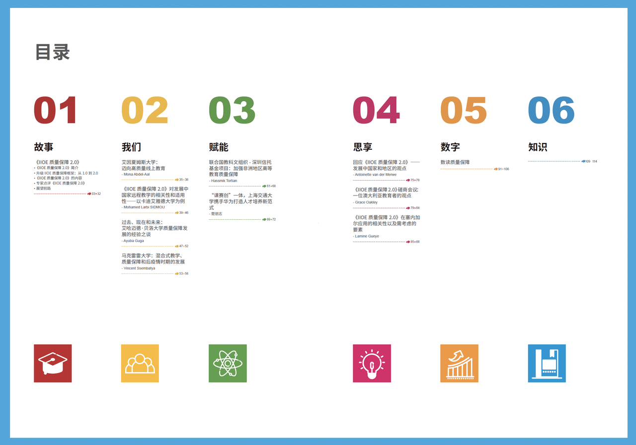 《云际》第三期聚焦西亚非洲地区,以“返璞归真:质量保障助力高等教育的未来”为主题,在2021年2021年国际网络教育学院合作伙伴会议(西亚非洲)和国际网络教育学院(IIOE)质量保障2.0咨询会议成果的基础上,以创新中心最新发布的《IIOE质量保障2.0》为重点,围绕构建、促进和支持在线混合式教育的机构生态系统展开一系列探究与分享,记录了IIOE在西亚非洲地区的伙伴院校于疫情和后疫情时代为确保高等教育连续性和质量而采取的行动和积累的经验,以及IIOE支持西亚非洲地区和全球其他伙伴院校开展在线混合式教学、实现数字化转型的优秀案例。