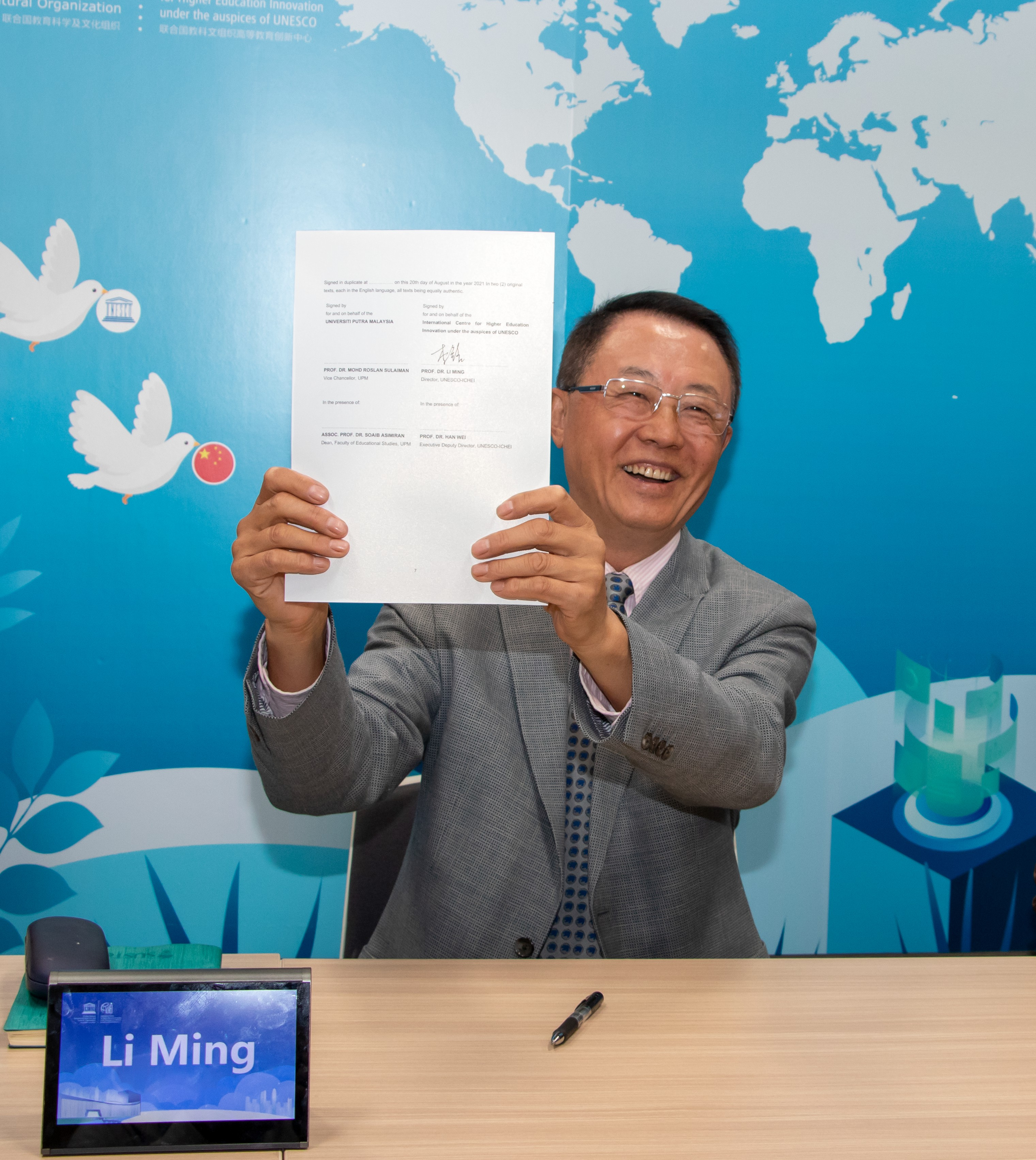 2021年10月11日,联合国教科文组织高等教育创新中心(中国深圳)(简称“创新中心”)与马来西亚博特拉大学正式签署了合作谅解备忘录,共同携手推进马来西亚高等教育创新发展和数字化转型、亚太地区高等教育创新发展,以及教科文组织的教育目标做出贡献。早在2019年,双方曾合作联合国教科文组织-深圳信托基金亚洲项目的地区政策简报,此次签署合作谅解备忘录意味着双方将全面开展正式合作。