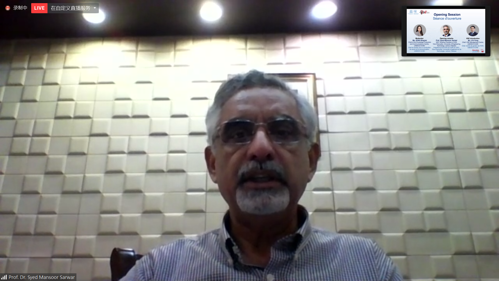 来自西亚非洲地区逾20个国家的伙伴高校代表、政府代表、联合国教科文组织代表、教师、专家,以及国内合作企业代表共计100余人参加了本次会议。IIOE 2021年轮值主席单位拉合尔工程技术大学(巴基斯坦)校长Syed Mansoor Sarwar教授致开幕词。