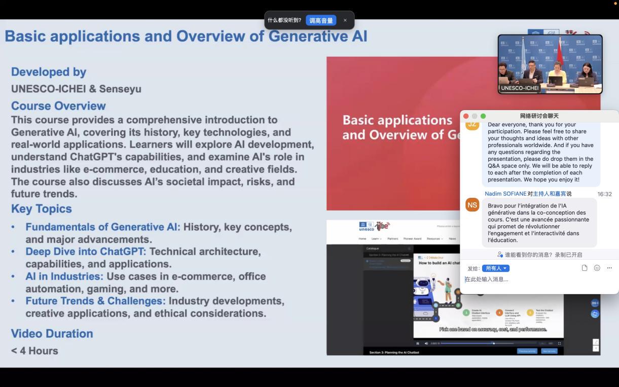 人工智能(AI)技术的快速发展正在为教育领域带来新的机遇,也为高等教育更高效、更智能化的变革提供契机。2025年3月27日,联合国教科文组织高等教育创新中心(中国深圳)(以下简称“创新中心”)面向全球发布“DeepSeek on IIOE (DS-I)”,这标志着创新中心旗舰项目——国际网络教育学院(IIOE)开放数字学习平台成功部署全球领先的开源AI大模型DeepSeek,并正式全面投入使用。本次发布活动旨在为IIOE伙伴院校和平台用户提供详细说明和指导,促进IIOE平台功能的更广泛应用。此举为教育工作者提供了更高效的AI技术支持,将中国先进技术方案推广至全球用户,特别是惠及发展中国家,彰显了创新中心携手全球伙伴推动教育数字化转型的共同愿景。